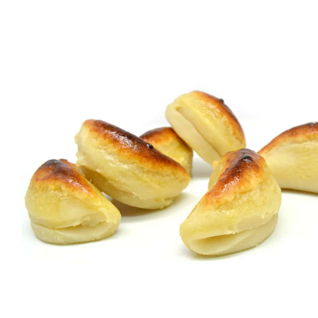 Delicias de Mazapán en dos texturas elaboradas artesanalmente con almendras, azúcar, miel y huevos. Se presentan de forma surtida en paquetes de 500g.